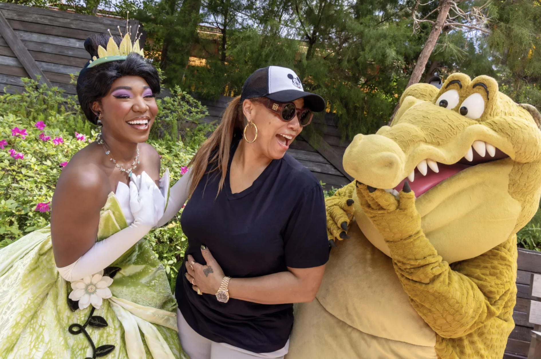 Queen Latifah visited Magic Kingdom recently according to the Orlando Sentinel! YES, she did! Not only that, but the Emmy and Grammy winner also got a chance to meet with Tiana and Louis from The Princess and the Frog.