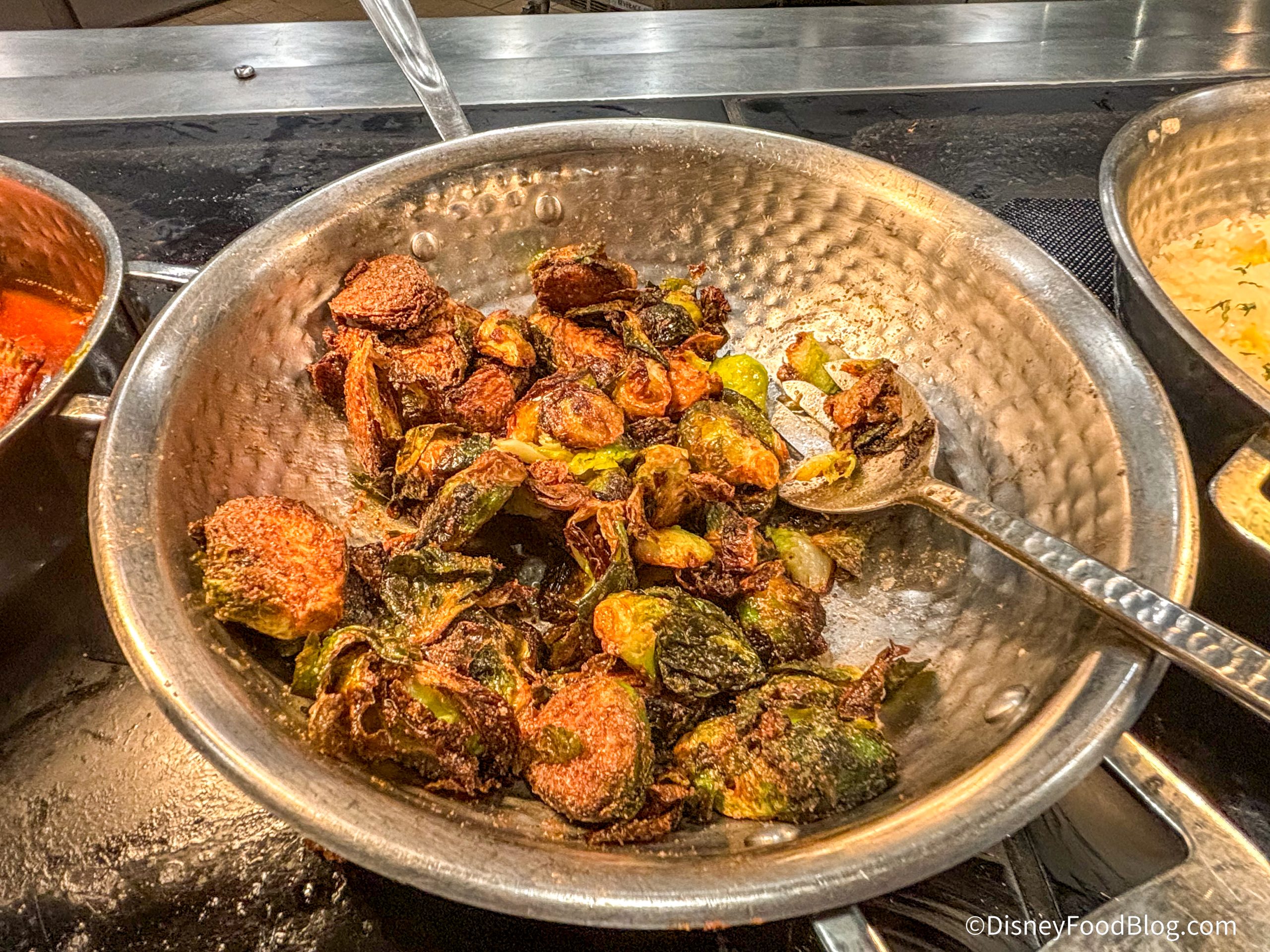 First up is the Caramelized Brussel Sprouts. These were calling our name when we saw them on the buffet line, so we had to give them a try. These had a lot of charred flavor to them and a few pieces tasted a bit burnt. They were a bit oily, but it is possible they had been sitting a bit before we got to them. The Brussel sprouts had a lot of good seasoning to them though! They were not spicy, but we could taste a lot of what seemed like garlic, pepper, salt and maybe paprika. Our biggest recommendation on these would be trying to get them when a fresh batch is put out.