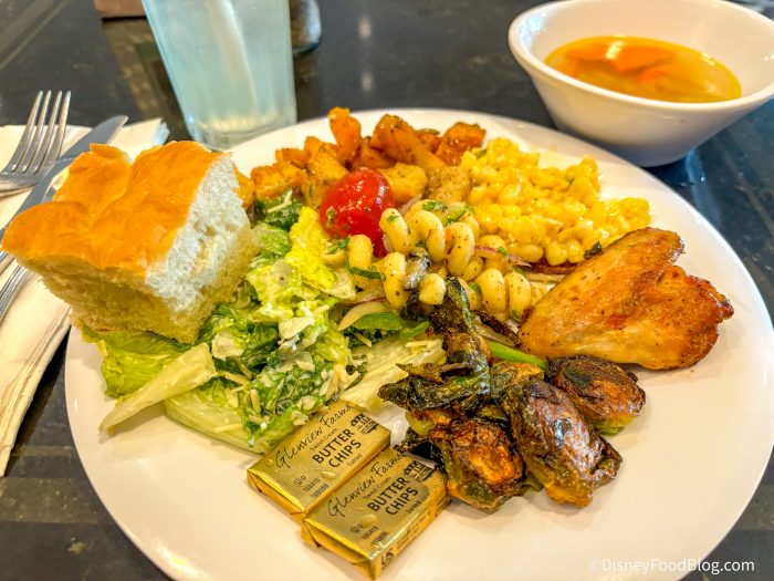 Overall, the food was good, but we didn’t really eat anything that really knocked our socks off. We think there is a great variety and pretty much anyone would be able to find something they wanted. We were disappointed in a few of the dishes (Chicken Noodle Soup, Pasta Salad, Poulet Marine Au Four and the Bread Pudding), but most dishes we really enjoyed. Our favorites included the Mexican Street Corn, Herbed Focaccia, and Blueberry-Lemon Tart.