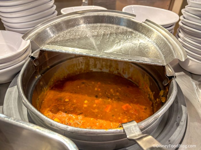 After that, you will find the soup station which offers two different soups. We had the option of Chicken Noodle Soup…