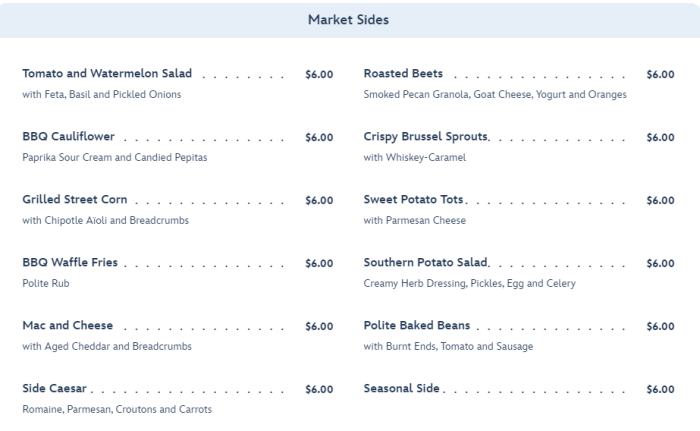The Polite Pig has a huge list of sides that you can choose from for this “meal,” so you’re certain to find something everyone will enjoy.
