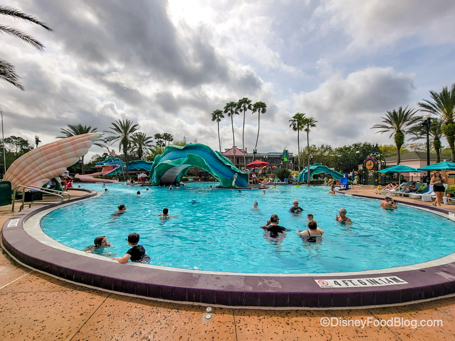 Doubloon Lagoon at Port Orleans — French Quarter has a 51-foot long water slide that looks like a sea serpent, a whirlpool spa, and Mardi Gras decorations. The pool closed back in January and will stay closed through April 2024, so depending on when you come to Disney, this pool may be open.