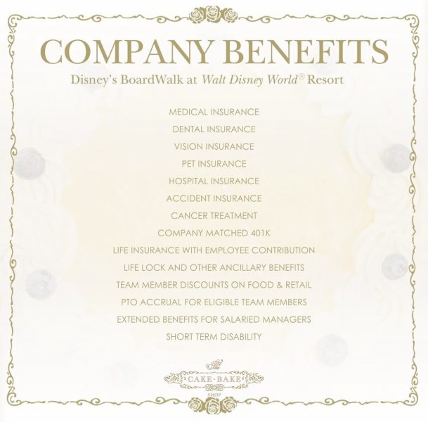Additionally, The Cake Bake Shop looks like it has a ton of great company benefits. They included some of these benefits in their Instagram post. It seems to be a pretty sweet gig! New dream job, anyone?