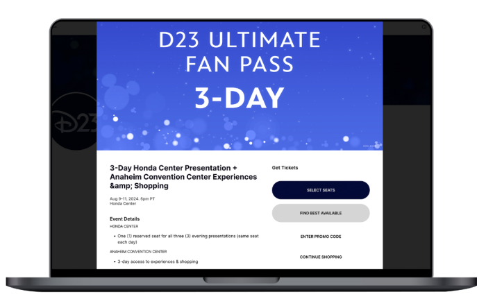 - D23 Ultimate Fan Pass 1-Day Ticket includes a reserved seat for that date’s evening show at the Honda Center and same-day access to all experiences at the Anaheim Convention Center—starting at $99.