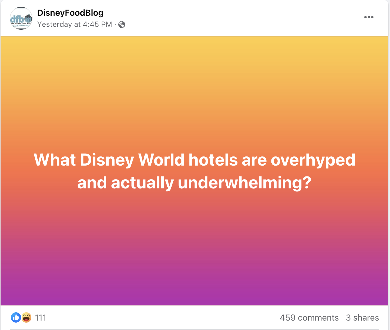 We reached out to our followers on Facebook to ask: “What Disney World hotels are overhyped and actually underwhelming?” The results were pretty varied. We had quite a few people leave their opinions in the comments!