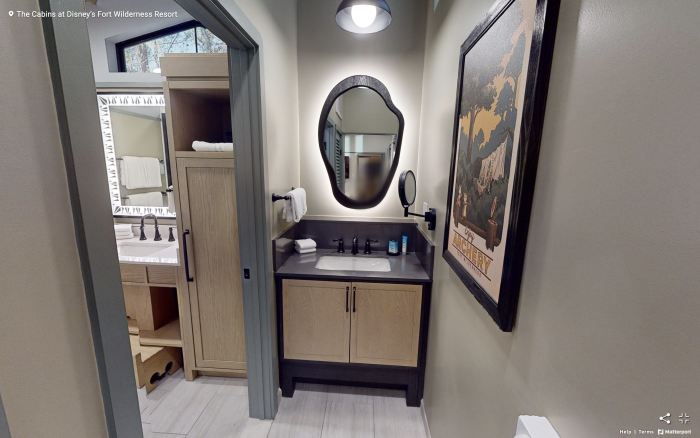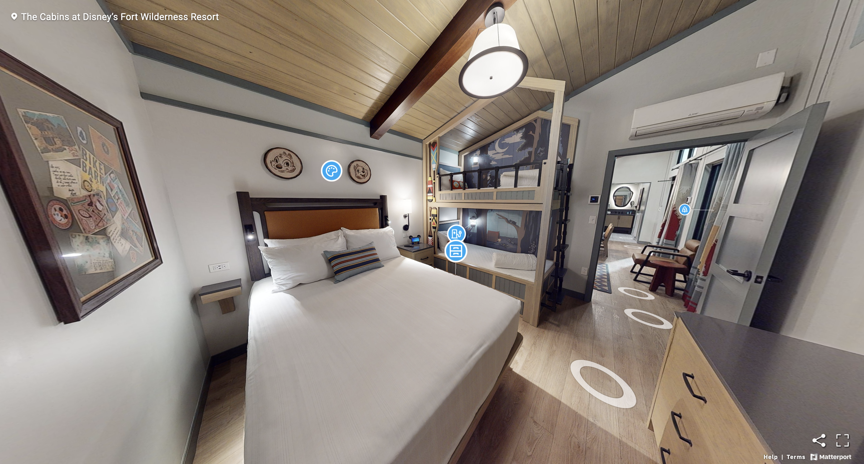 Now, this new look is different than what we’ve seen before. Instead of concept art or AI photos, Disney put a 360-degree camera inside a model cabin so we could take a look! The 360 view will allow you to see all the different parts of the cabin from whatever angle you’d like!