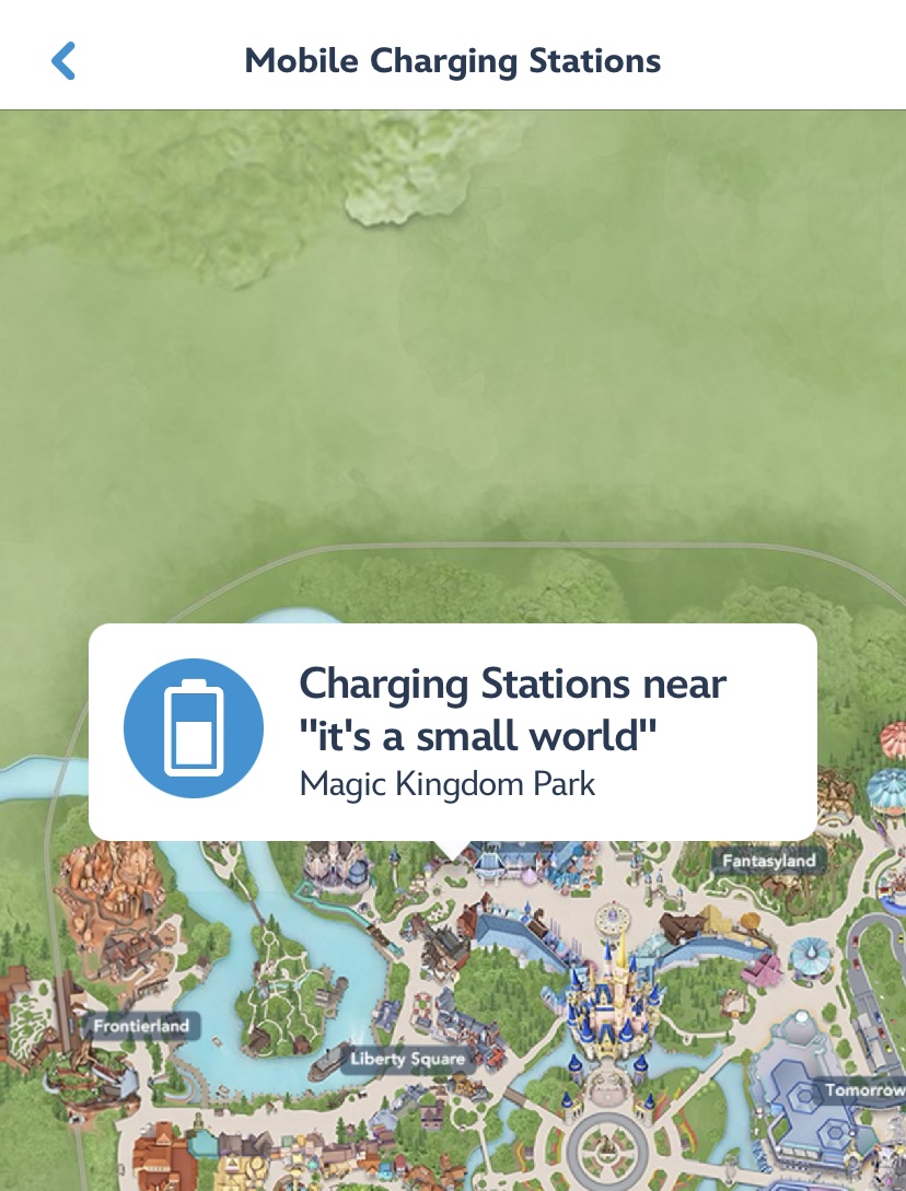 If you need to find one of these phone charging stations, you can find them on the app! Just use the search feature and search for “Mobile charging stations.” Then you’ll want to choose “Find on Map.” We found TWO in Magic Kingdom.