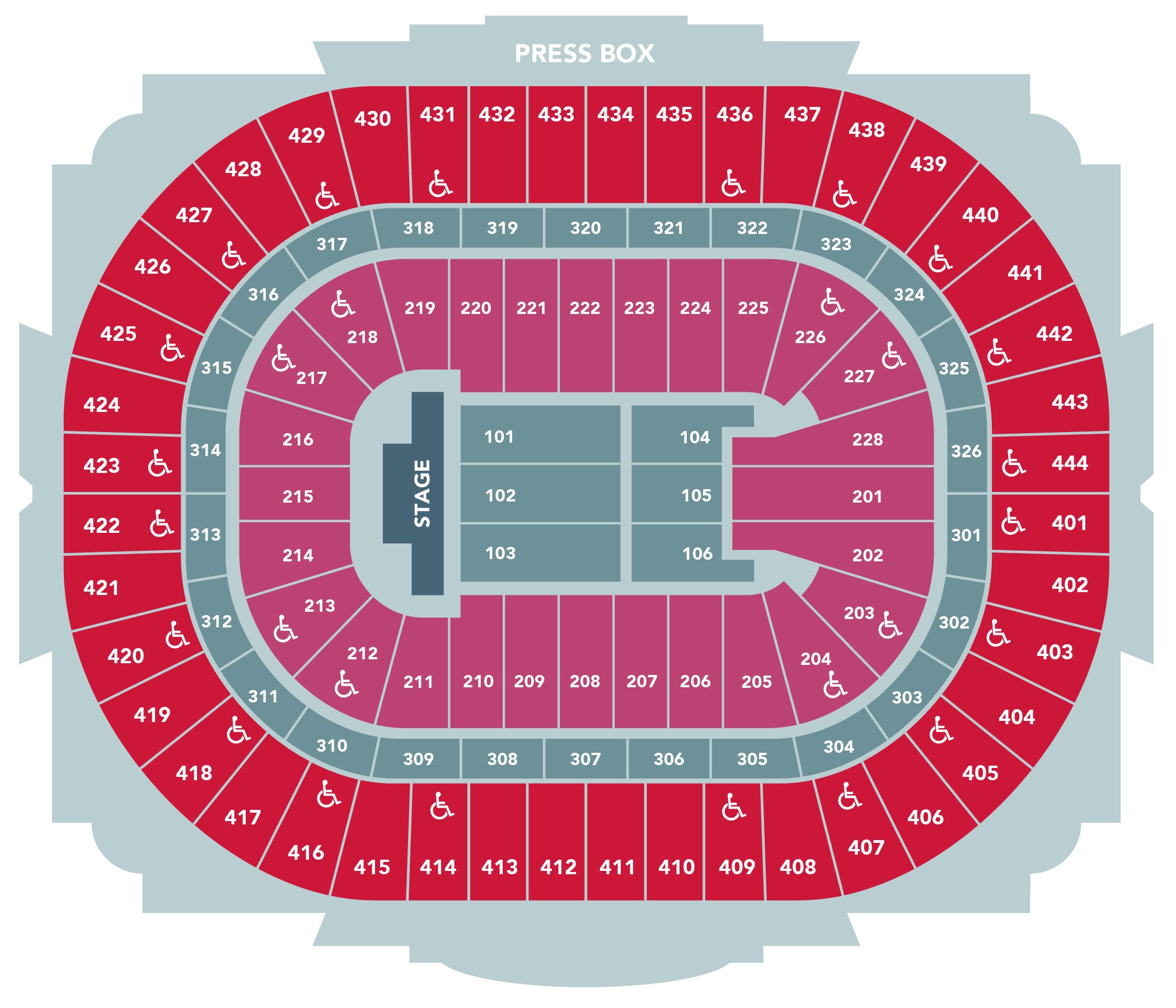 However, it’s likely those seats are probably going to go the fastest, so you’ll next want to try for those seats in the 205-225 sections, 304-323 sections, or the 408-437 sections. Now the 400 section might be the nosebleed seats, but at least they have a good, straight-on view of the stage. Granted, we imagine there will be giant video screens showing everything on the stage, and depending on how accessible those are, you may have a good view of the screens no matter where you sit.