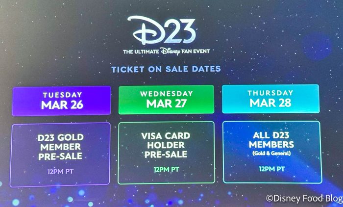In order to purchase tickets on March 26th for D23: The Ultimate Disney Fan Event, you must be a D23 Gold Member. Tickets for General Members with Visa cards and Gold Members begin on March 27th, and all D23 members can purchase tickets on March 28th.