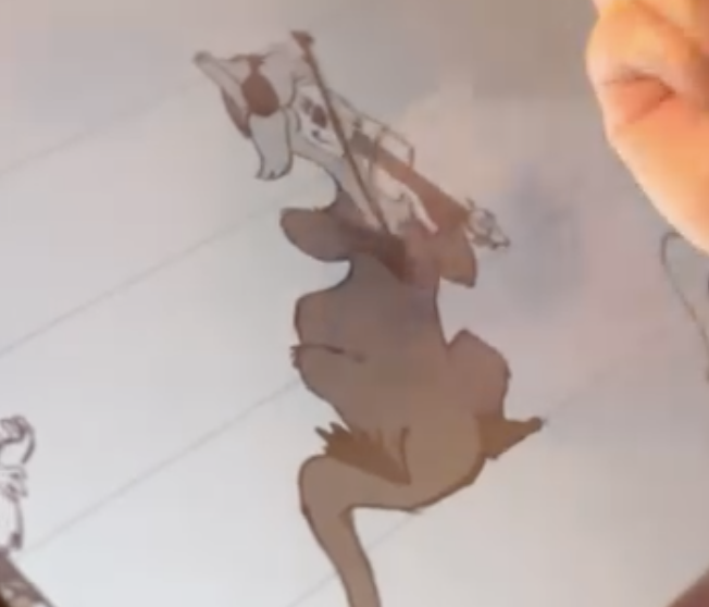 The process started with sketches, then creating hand-drawn turnarounds, and then it goes to a dimensional artist who makes a 3D rendering. From there, it goes on to mechanical design and fabrication, where it’s transformed into an animatronic.