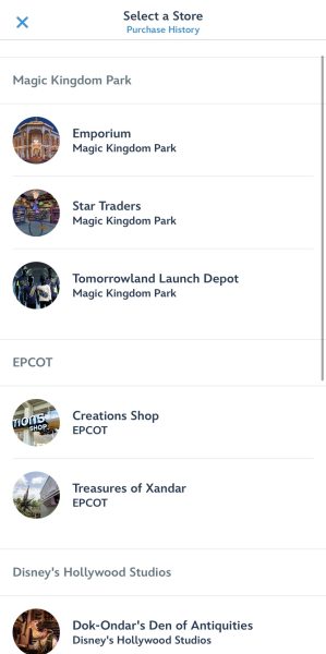 You’ll be prompted to select a store. Note that this isn’t available for ALL gift shops in Disney World, but it’s available at most of the biggest stores.