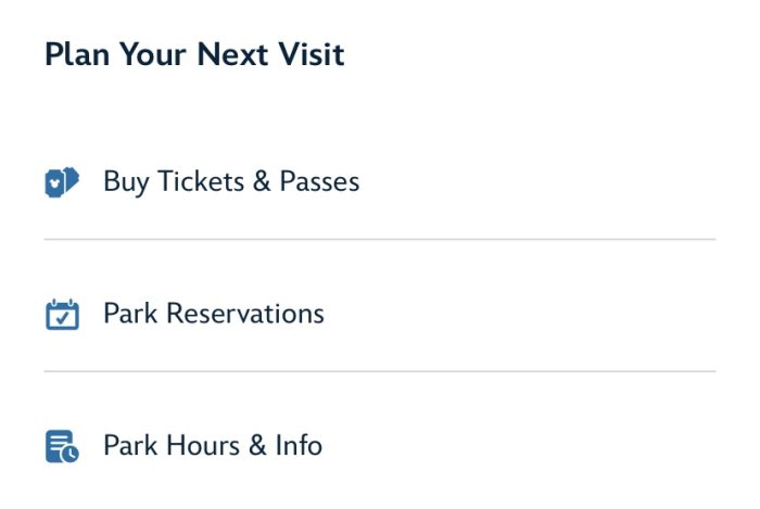 On one side of this page, you can see the park hours for each day of your visit. But what we’re talking about here is the OTHER side — the one labeled “Today.”
