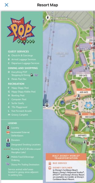 If you click this, you’ll open up a map of your hotel! This looks just like the physical maps, with various locations like guest services, pools, and restaurants marked.