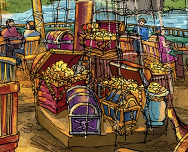 And the massive collection of treasure in the middle could be from the shipwreck that the Lost Kids used to make the hideout, but we also can’t help wondering if they stole some from the pirates!