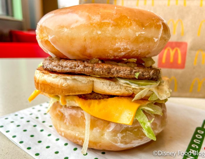 Just to clarify, I’m not a big donut burger person (don’t tell AJ — she loves them). I know they’re super popular at fairs and stuff (and Everglazed in Disney Springs even has one on the menu), but they never sounded very good to me because it’s just a LOT. This Krispy Kreme Big Mac changed my mind.