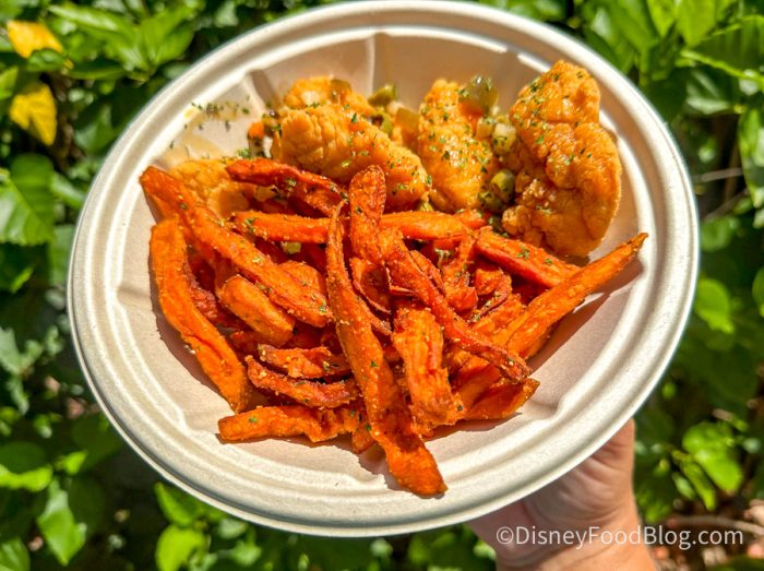 You will find Hot Honey Chicken with Sweet Potato Fries and Tiana’s Famous Beignets here. These dishes debuted for the opening of Tiana’s Bayou Adventure and have stuck around since!