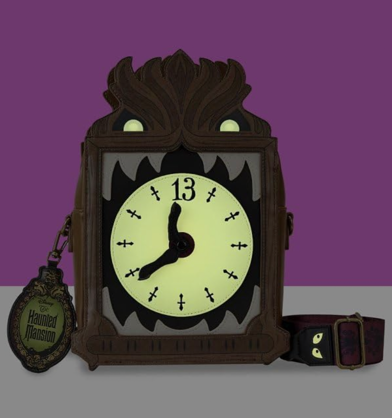 Calling all Foolish Mortals! This Haunted Mansion Loungefly Crossbody is so unique! It features the iconic clock from the Mansion. It is so cute that it might materialize at your front door!