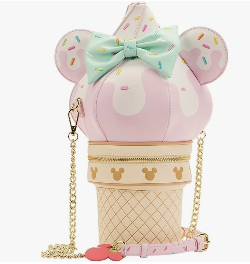 We love Loungefly backpacks but this Loungefly bag is next level! The ice cream shape is so cute and perfect for a summer day. The lining features sprinkles with Minnie and Mickey outlines.