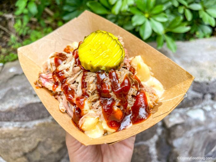 We also love the French Fries with Pulled Pork and Cheese from Flame Tree Barbecue in Animal Kingdom, which FINALLY returned to this restaurant in late 2023 after going missing for a few years!