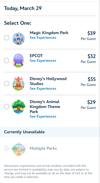 We’ve seen the multi-park option sell out for Genie+ before some of the parks are even open (which could thwart your Park Hopping plans if you were planning to use Genie+ in multiple parks for the day).