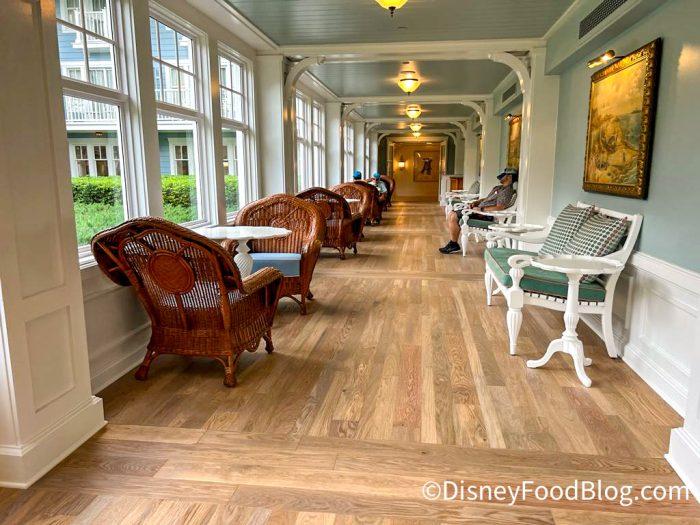 … and there are also a few landing spots with things like rocking chairs, roaring fireplaces, and other quick spots to stop and relax at hotel lounges, and recreational rooms like The Solarium at Disney’s Beach Club Resort…