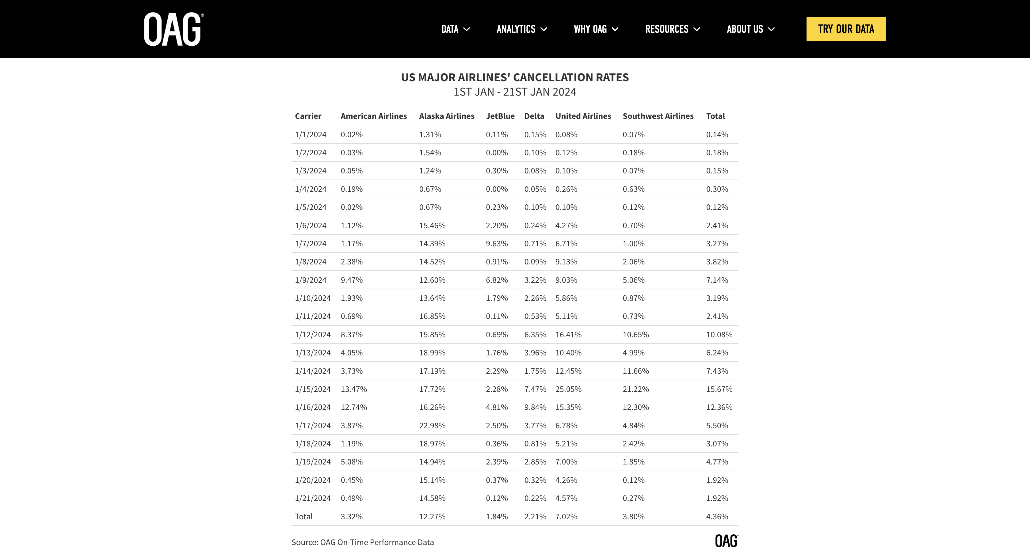 To start with, according to the U.S. Department of Transportation (DOT), the flight cancellation rate in 2023 reached a record low of 1.2%, which is great news for us!