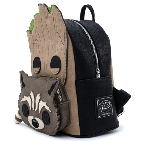 Two of our favorite Marvel characters are Rocket and Groot, and this bag features BOTH! Rocket is the front pocket of the bag, and the zipper pull is a little raccoon’s tail.
