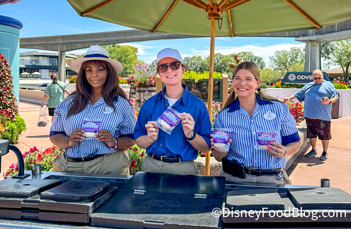 There’s a catch though — they’re only given out at noon on Saturdays and Sundays! You’ll see Cast Members roll up with a large cooler full of peanut butter and jelly (both strawberry and grape jelly) Uncrustables and hand them out to anyone around who would like them.