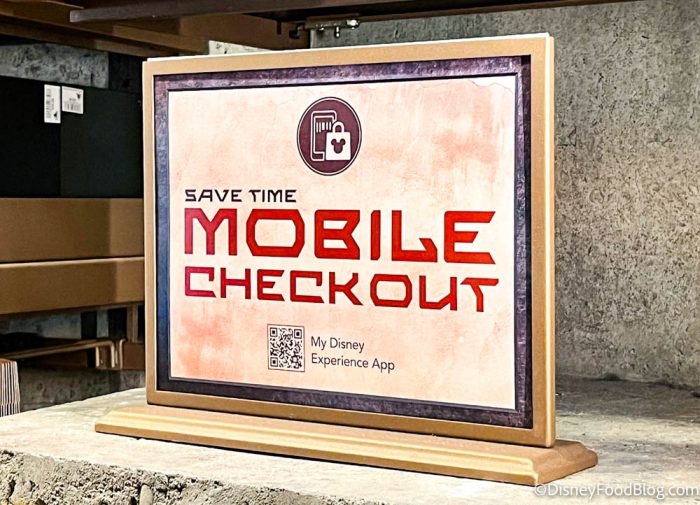 EXCEPT at some merchandise locations, it doesn’t! You can use Mobile Checkout, which started rolling out in Disney World a few years ago. To use, you’ll open the My Disney Experience App, search for the store you’re in, scan the item(s) you’re buying on your phone, and then check out in the app. Then, head to one of the Mobile Checkout stands in the store, show them your screen as proof of your purchase, and you’re good to go!