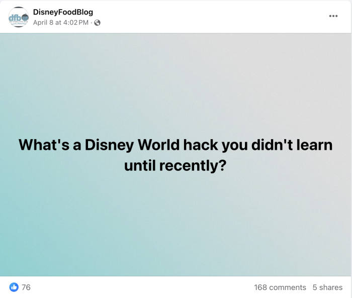 We reached out to our followers on Facebook to ask: “What’s a Disney World hack you didn’t learn until recently?” We had quite a few people leave their opinions in the comments!