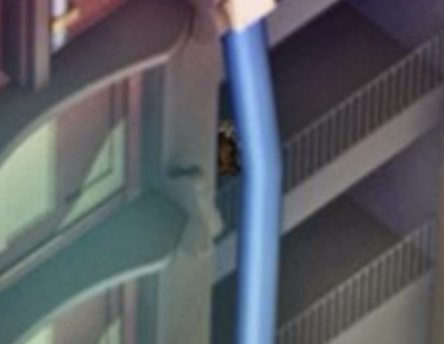 Off to the side of the tower, if you zoom in, screenshot, and then zoom in even further, you’ll see a tiny Groot waving back at you!