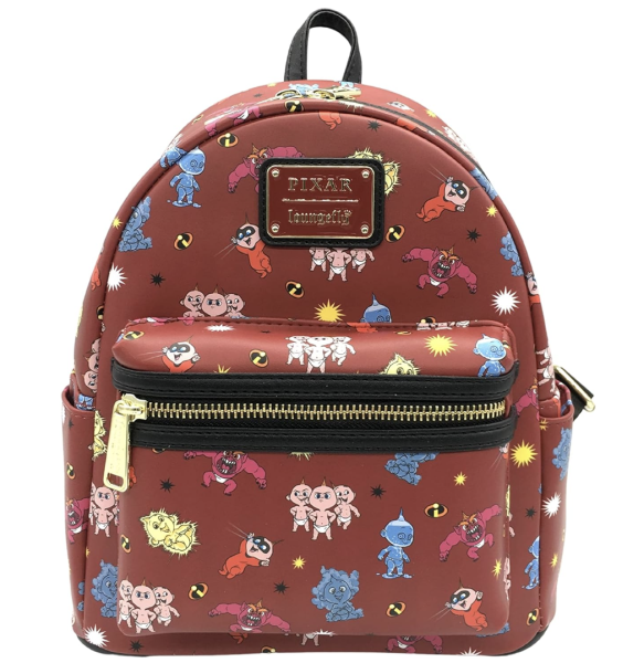 This Loungefly bag highlights Jack-Jack Parr! He’s showing off all his various powers, and the chaos of this pattern reminds us of the hilarious scene when Kari is babysitting him (or trying to, anyway).