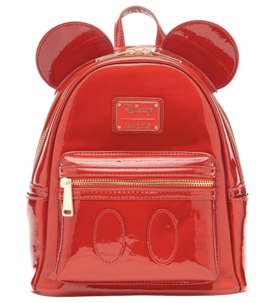 Red is the main color of the Incredibles’ uniforms, so that’s a connection, too! The bag is faux leather and has Mickey ears on the top.