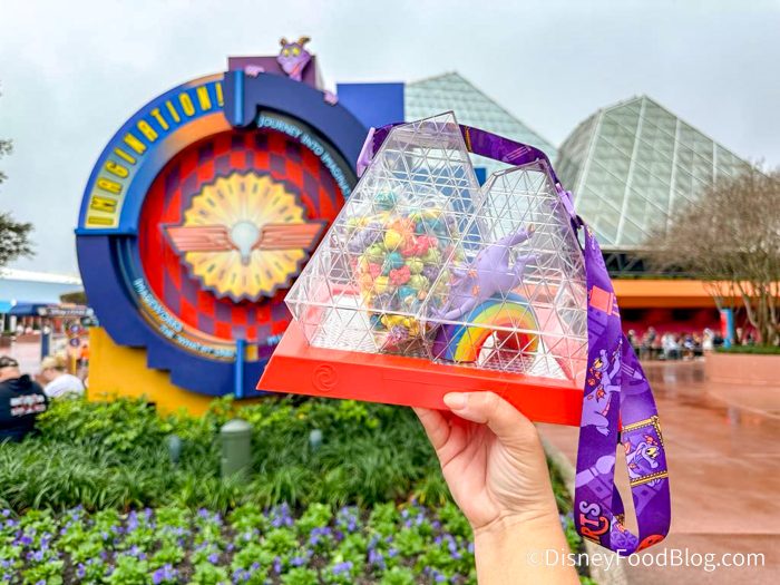 This popcorn bucket looks like the iconic Imagination Pavilion with Figment inside! It’s super cute, and it even comes with rainbow popcorn.