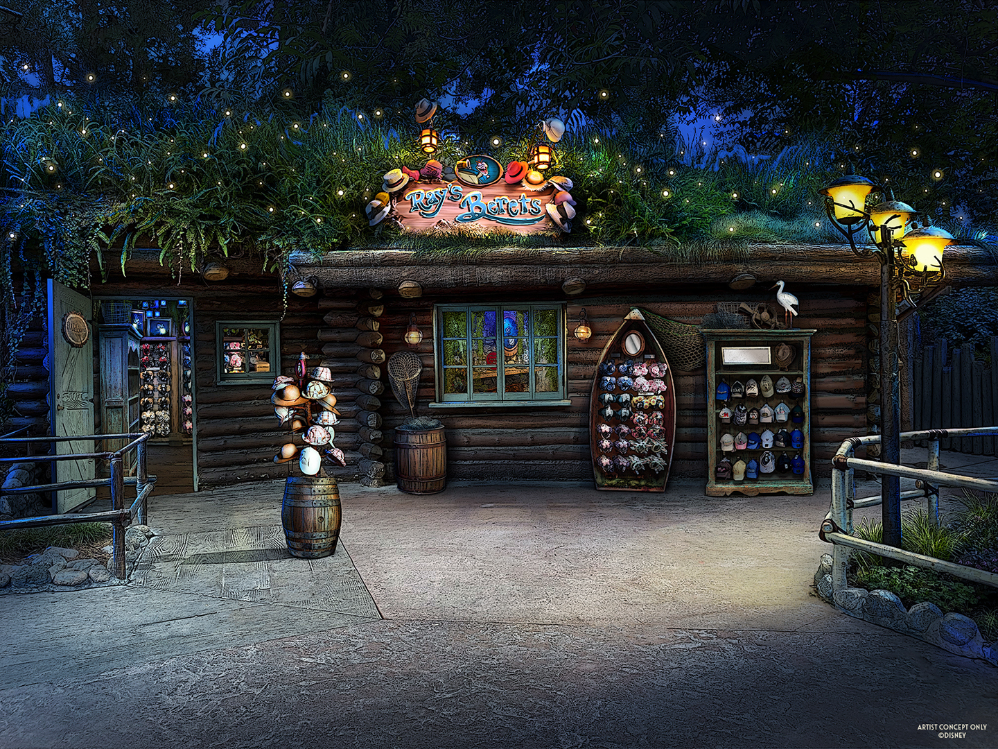 It was announced a little while ago that the stores in Disneyland’s Critter Country would be getting a bit of a Tiana-inspired revamp. The store that is currently The Briar Patch will be turned into Ray’s Berets, and part of Pooh Corner will be transformed into Louis’ Critter Club.