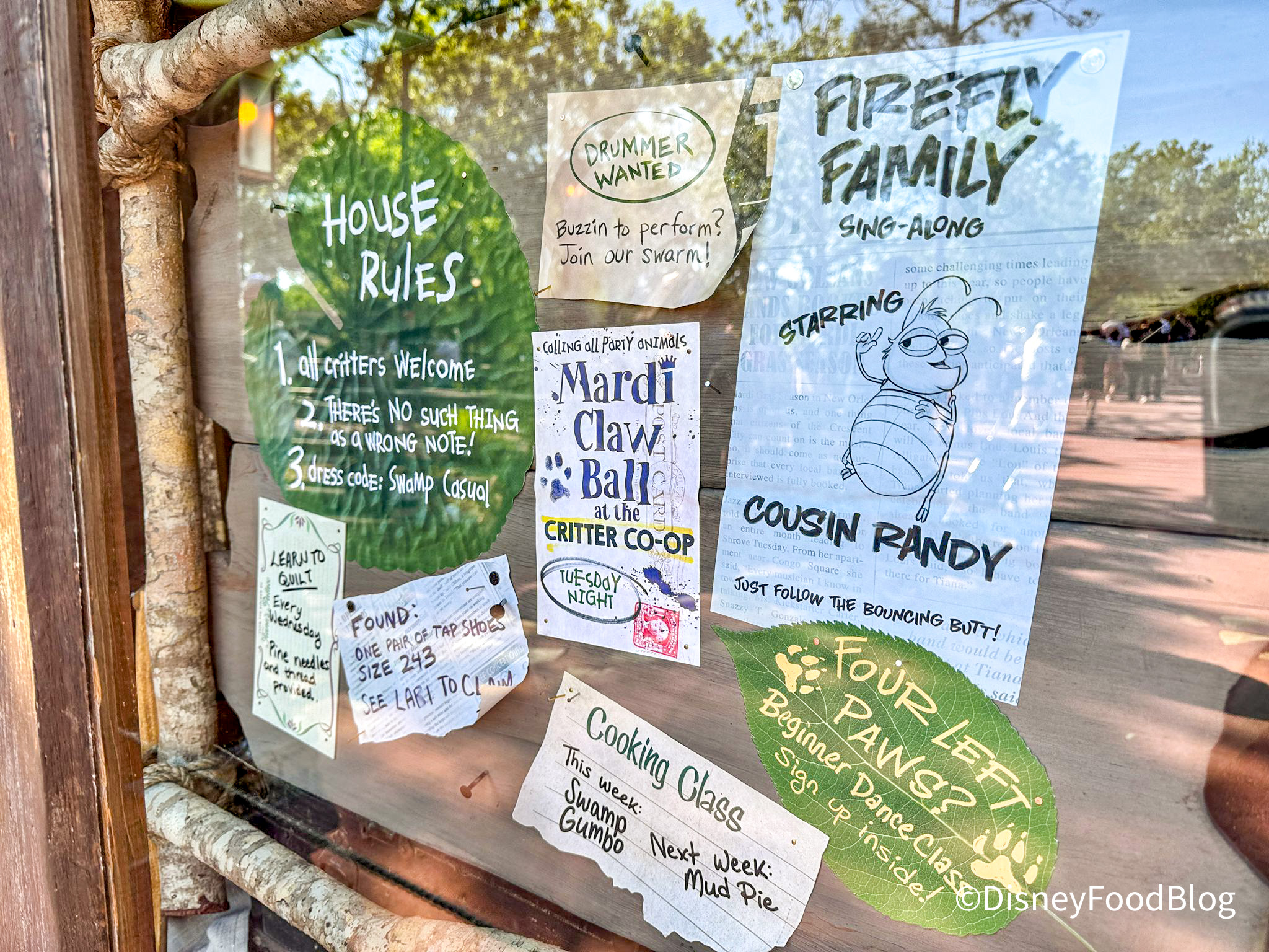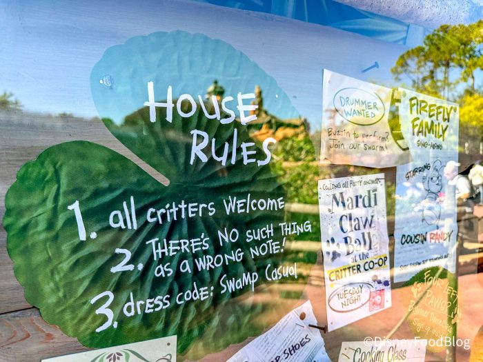 When you’re walking by Critter Co-Op, make sure you take a look at the window displays. In them, you’ll see a ton of fun signs, some vegetables, and even a note that is from the kitchen of Tiana’s Palace. That’s right, Tiana’s Palace… like the restaurant that is at Disneyland!