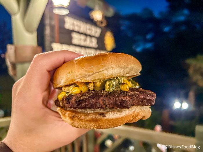 Hungry Bear Restaurant is serving a Lah’mu Burger for $15.99. The burger features an Angus chuck patty, roasted sweet corn, poblano peppers, queso fresco, Chile lime sauce, and avocado smash.