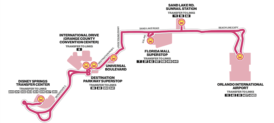 Beginning on April 21st a new route of Orlando’s Lynx bus system – Route Link 311 – will launch. Starting at Orlando International Airport (MCO), the line will make six stops: Sand Lake Rd. Sundial Station, the Florida Mall Superstop, Universal Boulevard, Destination Parkway Superstop, the Orange County Convention Center on International Drive, and finally the Disney Springs Transfer Center. Transfers to other lines are available at most of these stops. The new route will run each day from 5:00 a.m. to 11:00 p.m. every 30 minutes.