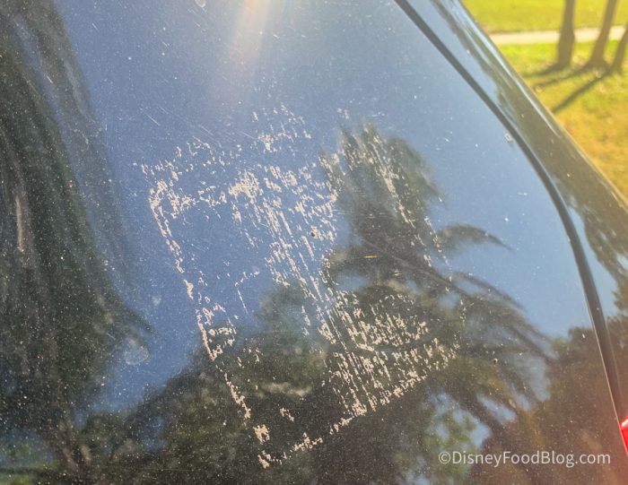 But, I made a terrible mistake with a passholder magnet and I’m warning you not to do the same. As a person who drives an all-black car with black leather seats in Florida, I’ve become accustomed to just how dangerously hot it can get in the summer. So, I probably should have predicted that putting a plasticky vinyl magnet on my car was probably not the wisest decision. I was just so dang excited to finally be a passholder and join the club that I couldn’t help myself.