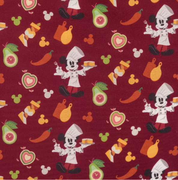 … to reveal a drawstring and magnetic clasp. The inside print is an all-over pattern that features several sliced foods and your pal Chef Mickey again…