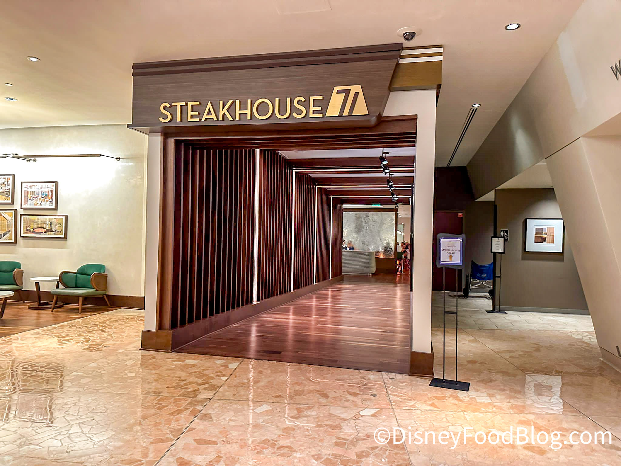 As we mentioned above, Steakhouse 71 is located on the ground floor of Disney’s Contemporary Resort, right in the lobby. The entrance is marked by its own dedicated hallway and sign.
