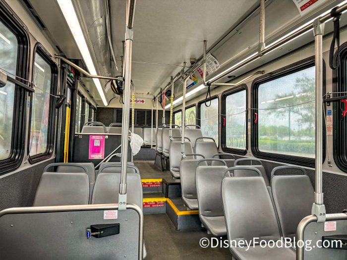 There’s even free hand sanitizer! You’re going to take this bus to the Destination Parkway and Tradeshow Boulevard stop (aka the Orange County Convention Center), and BEFORE you get off the bus, you need to ask your driver for a transfer to Bus 38. This is going to prevent you from having to pay that $2 fare on your next bus.
