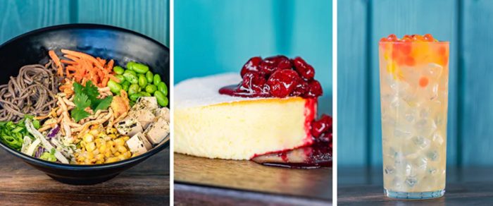 - Soba Noodle Salad: Tofu, cabbage, edamame, carrots, roasted corn, scallions, and cilantro topped with crispy shallots and sesame ginger dressing (Currently available)