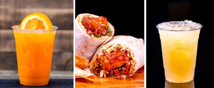 - Orange Chicken Burrito: Crispy orange chicken and lo mein noodles with vegetables and egg fried rice rolled in a flour tortilla and served with hot sauce and fried wonton chips (New)