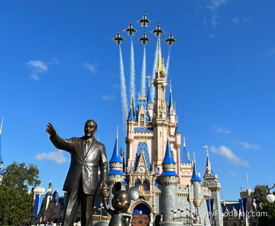 The next event happens a little earlier in the year, usually around the third Saturday in May, which is Armed Forces Day. Now, we will warn you this doesn’t always happen, but we’ve often had a chance to see the U.S. Navy Blue Angels fly over Cinderella Castle. We have to warn you that Disney has not promised that we’ll see the Blue Angels in 2025, so you’ll have to keep an eye out for an announcement.