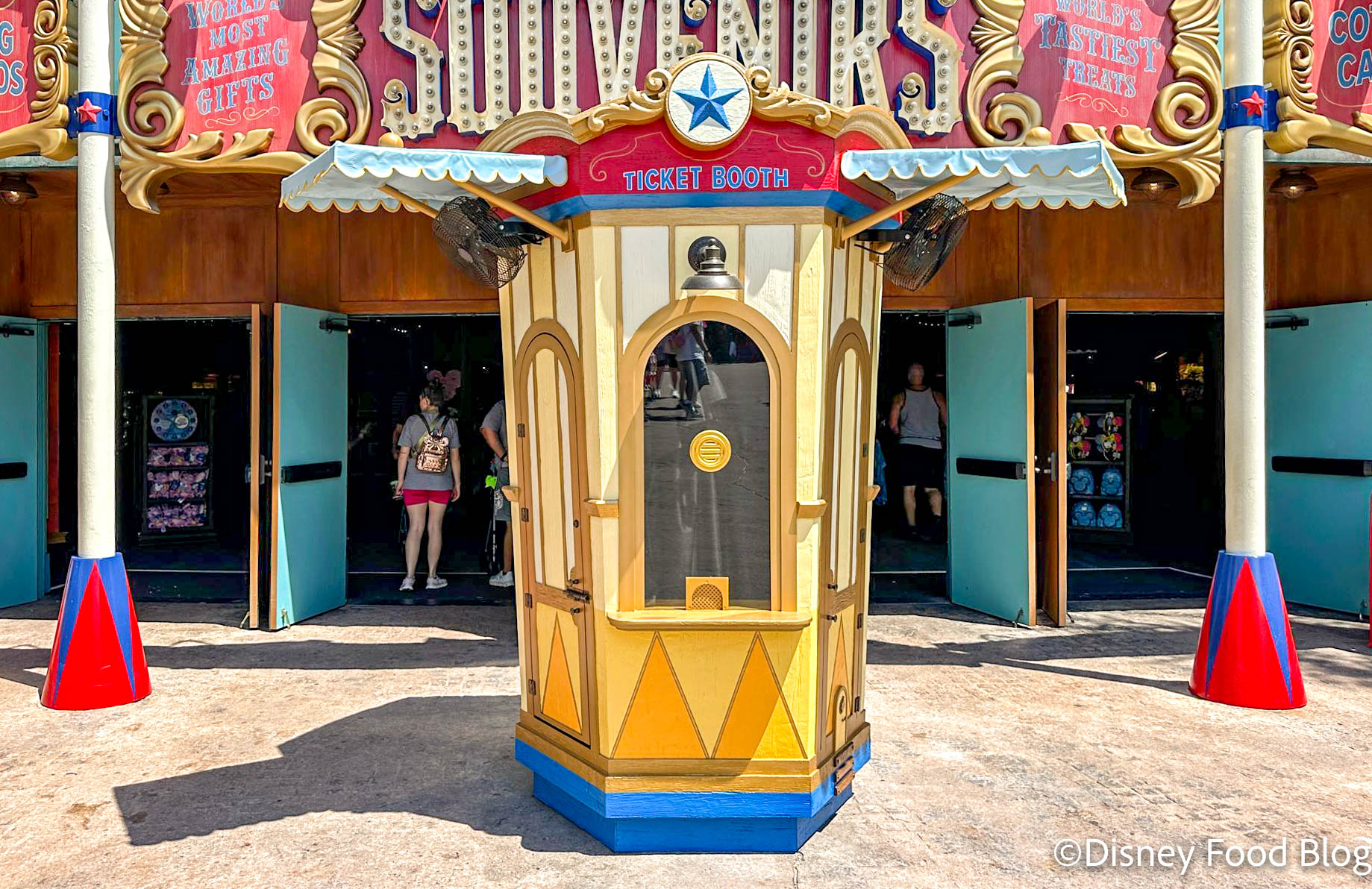 We’ve been watching Disney prepare this area for a while now, but now we’re FINALLY seeing some real movement! Take a look at this popcorn-themed elephant that has arrived near the Dumbo ride! We saw the first elephant arrive a few days ago, and now there’s a ticket booth in front of Big Top Souvenirs!