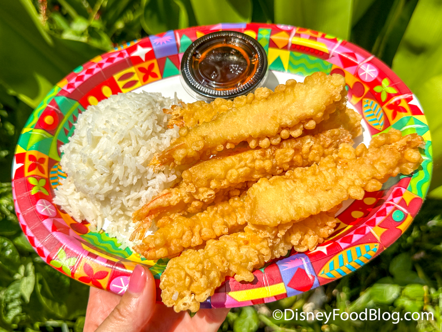 A walk-up waitlist may be available at the table-service restaurant, however, Yak & Yeti Local Food Cafes is a counter-service variation of the table-service restaurant. Here you can find some delicious Sweet-and-Sour Tempura Shrimp! You get a pile of shrimp that is really tasty.
