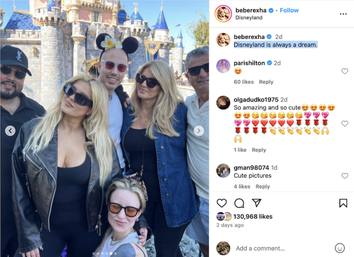 In addition to the above snap of herself in front of Sleeping Beauty Castle, Rexha also shared additional images throughout the post’s slides, including what appears to be a family photo in front of the castle…