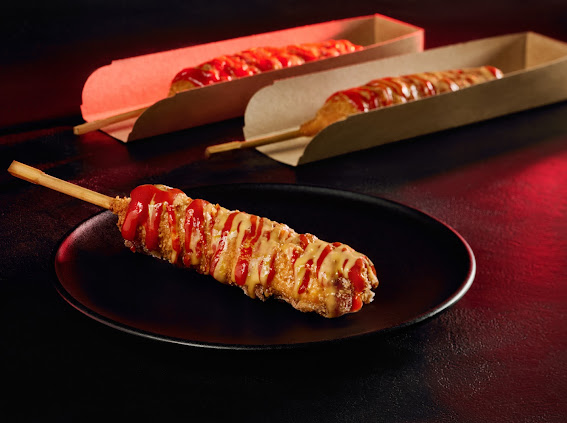 - Korean Corn Dog: Beef hotdog, mozzarella cheese, Panko bread crumbs, Sriracha ketchup and honey mustard.