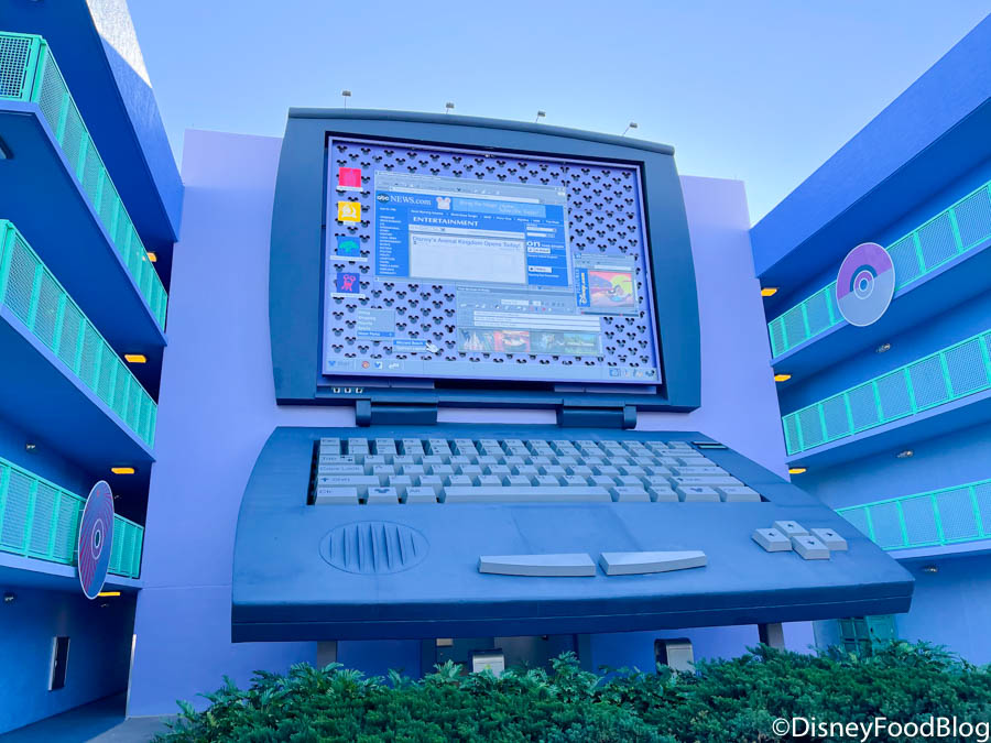 While from a theming and decor standpoint, the 1990s section of Pop Century is arguably one of the resort’s coolest — seriously, the gigantic laptop with a permanent 1999 homepage sends our nostalgia sense into overdrive — it’s also arguably the least convenient area at the resort to stay. It’s far from both the Classic Hall (AKA the lobby building where the food court and bus stops are located) as well as the Skyliner station.
